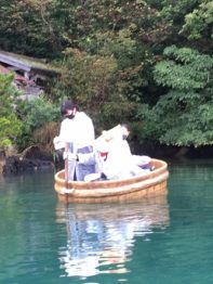 中学3年生は、たらい船体験、佐渡金山の見学です。金の延棒取りにも挑戦しました。また、昼食は「ぶりかつ丼」です。