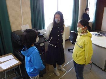 今日は全校集会を行いました。ただし、コロナ対策から全校児童生徒が集まることはせずに、いくつかのグループに分かれての実施でした。下の写真は、ビデオによる校長講話を視聴後、大切なことを伝え合っている小学生の様子です。上級生と下級生が一緒になって、一生懸命話し合っていました。