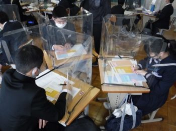 1月22日の第2回児童生徒総会の議案書について、小・中学校で審議を行いました。総務部の児童生徒が進行役です。生徒会スローガン、委員会、部活動の活動について振り返りました。子供たちは熱心に議案書を読み、多くの質問や意見を上げていました。