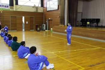 児童生徒会が企画する豆まき集会が行われました。例年行っており、子供たちが楽しみにしている集会です。初めに、総務の子供が集会の流れについて説明し、密とならないよう注意して行われました。