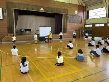 午後は、運動会の練習です。雨模様だったので、体育館で競技の説明や移動方法等を確認していました。運動会実行委員が中心となって進行していました。運動会の準備も、子供が主体となって進められています。