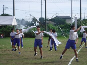 その後は、応援合戦の練習です。プログラムにある「応援パフォーマンス」の中間発表を行いました。息の合ったダンスを踊ったり、大きな声で応援歌を歌ったりしました。6分間の制限時間をフル活用して表現をしていました。