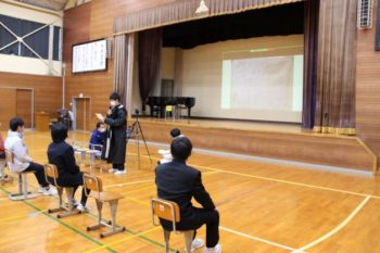 今日のCTの時間から5時間目にかけて令和4年度いじめ見逃しゼロスクール集会、いじめ見逃しキャラバンの取組がありました。はじめに総務部が行ったあいさつ運動やいじめ防止の俳句作りの取組の説明がありました。その後、オンラインでNAMARAエンターテインメントの出来心様やオダニハジメ様を講師として「みんな違ってみんないい」の御講演をいただきました。